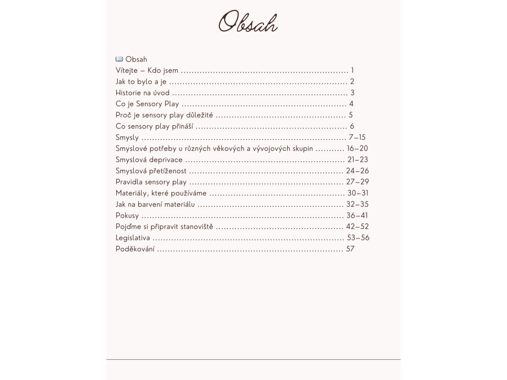 Smyslové potřeby u různých věkových a vývojových skupin ........... 16–20